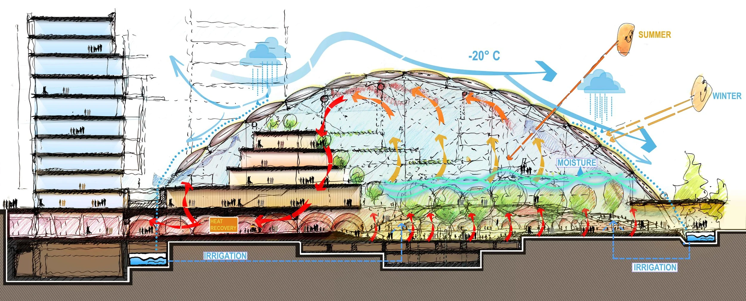 Designers: Bechu & Associés (France), Design leader, Architecture & Urban Planning || Atelier Ten (UK), Regenerative Design, Environmental Design, Biomimicry and Utilities Infrastructure || Robert Bird Group (UK), Civil, Geotechnical and Structural Engineering || SOA Architecture (Italie), Associate firm, Architecture || MIC-Hub (Italie), Mobility || Parc Nouveau (Italie), Landscape Architecture || Future Food Institute (Italie), Food systems transition || Embix (France), Smart-grid and energy || The Climate Company (France), Climate modelling and adaptation