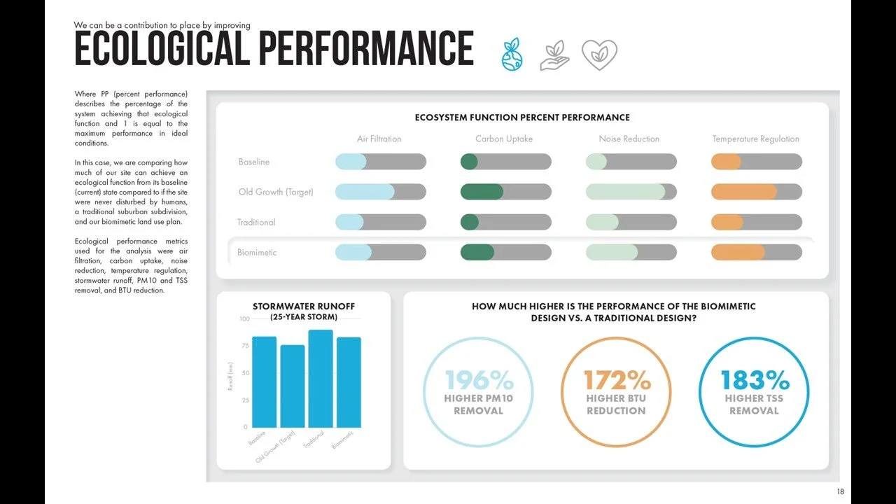 In our process, we built out biomimicry strategies for six key focus areas, providing engineering, material selection, and planting strategy for each. This comprehensive document include the world’s first “biomimicry building standard” - a report card on how “biomimetic” this building was.