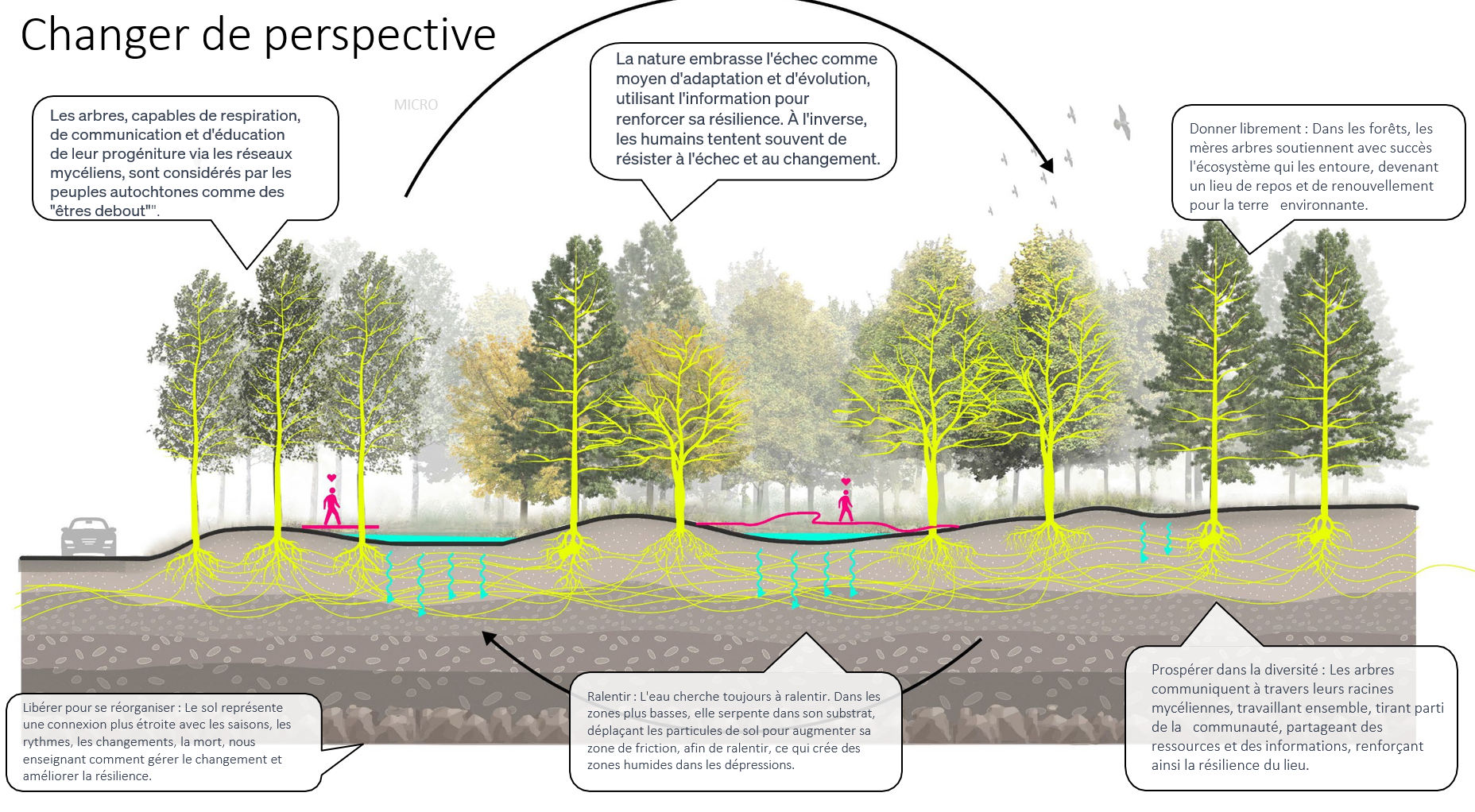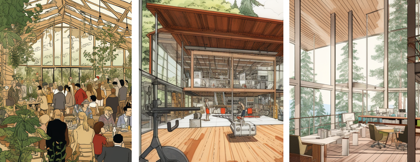 The key to our process is to design a building that is informed and guided by its environment. In this project, a progressive client wanted to design a building that could contribute to an 200-hectare forest, which they were using as private wellness retreat for an adjacent development that had no public amenities. Together with architects, B.Mondo, the client engaged B+H Biomimicry to collaborate unpack the Living Story of the place and use biomimicry to inspire the design for a 900m2 commercial facility. The goal was to know the opportunities, barriers, principles and key story lines of the forest ecosystem in order to create a more resilient and harmonious design.